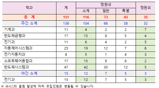 수시2차 모집학과 및 인원