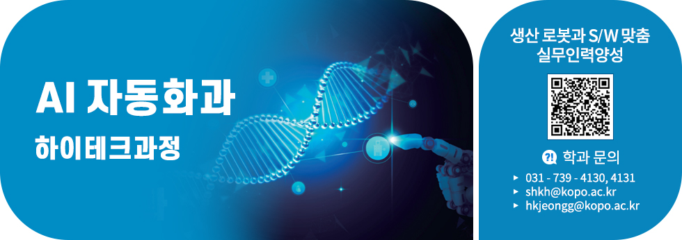 ■ 취업률 ▷ 평균 취업률(2017 ~ 2024) 92.8 % ▷ 평균 취업유지율(2017 ~ 2024) 94.0 % ■ 주요 취업처 ▷ 2017 ~ 2019 취업현황 바로가기 - SIEMENS 지멘스 김○현 - OMRON 오므론제어기기 박○영 - APPLIED MATERIALS make possible 어플라이드 머티리얼즈 남○석 - MEMC TECHNOLOGY IS BUILT ON US 엠이엠씨코리아 문○필 - Gobal ZEUS 제우스 김○권 ▷ 2020 취업현황 바로가기 - KIA 기아자동차 윤○원 - Autonics 오토닉스 정○훈 - CLASSYS 클래시스 김○호 - CoAsia CM 코아시아씨엠 문○르 - ActRO 액트로 진○환 ▷2021 취업현황 바로가기 - 포스코PH솔루션 포스코 이○빈 - GaON 가온전선 백○람 - KCTeCH 케이씨텍 김○찬 - Amkor Technology 앰코테크놀로지 이○주 - DREAMTECH SOLUTIONS COME FROM DREAMTECH 드림텍 강○호 ▷2022 취업현황 바로가기 - 한국경제신문 한국경제신문 구○석 - SEKONIX 세코닉스 박○휘 - TDK 티디케이한국 이○우 - CLASSYS 클래시스 곽○혁 - BGF로지스 비지에프로지스 유○목 ▷2023 취업현황 바로가기 - nextchip 넥스트칩 서○남 - PAPA JOHNS 한국파파존스 남○경 - INSIGHT DIC 디아이씨 이○욱 - FURONTEER 퓨런티어 이○진 - 티라로보틱스 티라로보틱스 장○혁 ▷2024 취업현황 바로가기 - 한미반도체 한미반도체 신○훈 - SEKONIX 세코닉스 임○일 - Amkor Technology 앰코테크놀로지 윤○호 - BorgWarner 보그워너 안○진 - SYSTEM R&D 시스템알앤디 김○규 ■ 취득 가능 자격증 ▷ PLC + Robot : PLC제어 / HMI / 모션제어 / ROBOT - 자동화설비산업기사 - 자동화설비 기능사 - MFEC(Mitsubishi FA Engineer Certification) ▷ 프로그래밍 : C# / MS-SQL / AI+ X 제어 - 정보처리기사 - 정봉처리산업기사 - 정보처리기능사 ▷ 시퀀스제어 + 전기 + 공압제어 : 시퀀스제어 / 전기 / 공압제어 - 설비보전기사 - 기계정비산업기사 - 설비보전기능사 - 전기기사 - 전기기능사 ▷ CAD : 2D·3D CAD / 전기CAD(EPLAN) - 기계설계산업기사 - 전산응용기계제도기능사 - SolidWorks 인증 라이센스 ■ 교육훈련목표 반도체 | 의약 | 바이오 | 물류 | 배터리 제조 반도체/의약/바이오/물류/배터리 제조기업의 자동생산 설비 및 장비에 대한 기술교육, 기업에서 필요한 산업용 로봇과 소프트웨어 맞춤 실무 인력양성 ▷ 대졸취업실무과정 10개월, 1200시간 ■ 취업프로세스 ▷ SPEC-UP - 3월 ~ 5월 : 전공기초교육 자격증 정보수집 - 6월 ~ 8월 : 기초 프로젝트 진행 관련자격증 획득 - 9월 ~ 11월 : 포트폴리오 제작, 프로젝트 제작 발표 - 12월 이후 : 사후관리 취업 지원 ▷ 취업지원 - 3월 ~ 5월 : ORIENTATION · 취업전략 OT · 취업 멘토 특강 · 관련전시회, 기업견학 - 6월 ~ 8월 : 맞춤 밀착 컨설팅 · 이력서 작성/수정 · 이력서 틀리닉/완성 · 포트폴리오 관리 · 입사지원 기술 & 요령 - 9월 ~ 11월 : 취업추천 및 관리 · Target 기업 선정 · 입사지원/인재 추천 · 면접 Clinic 취업성공 - 12월 이후 : 사후관리 취업지원 ▷ 취업분야 - 반도체/의약/바이오/물류/배너티 분야의 생산자동화 관련 소재/부품/장비/제조 기업 - 주요업무 · 제어/운영/유지/보전/운영교육 · 소프트웨어 개발부 · 기게부 : 개발/조립/관리 · 전장부 : 설계/제어/성능테스트 · 소부장 기업의 기술지원/기술교육 ■ 취득 가능 자격증 - PLC + Robot PLC제어 / HMI / 모션제어 / ROBOT 자동화설비산업기사 자동화설비 기능사 MFEC (Mitsubishi FA Engineer Certification) - 프로그래밍 C# / MS-SQL / AI + X 제어 정보처리기사 정봉처리산업기사 정보처리기능사 - 시퀀스제어 + 전기 + 공압제어 시퀀스제어 / 전기 / 공압제어 설비보전기사 설비보전산업기사 설비보전기능사 전기기사 전기기능사 - CAD 2D · 3D CAD / 전기CAD(EPLAN) 기계설계산업기사 전산응용기계제도 기능사 SolidWorks 인증 라이센스 ■ 학과 주요 실습장비 - HMI - SCADA - PLC - NETWORK - MONTOIRING - I/O STATUS ▷ PLC(LS, MITSUBISH, OMRON, Rockwell, SIMENS) ▷ 서보모터(MITSUBISH, OMRON, Rockwell), 인버터 ▷ Mobile Robot, 6Axis Robot, Scara Robot ▷ 산업용 네트워크 라우터, 스위치(CISCO, Rockwell)