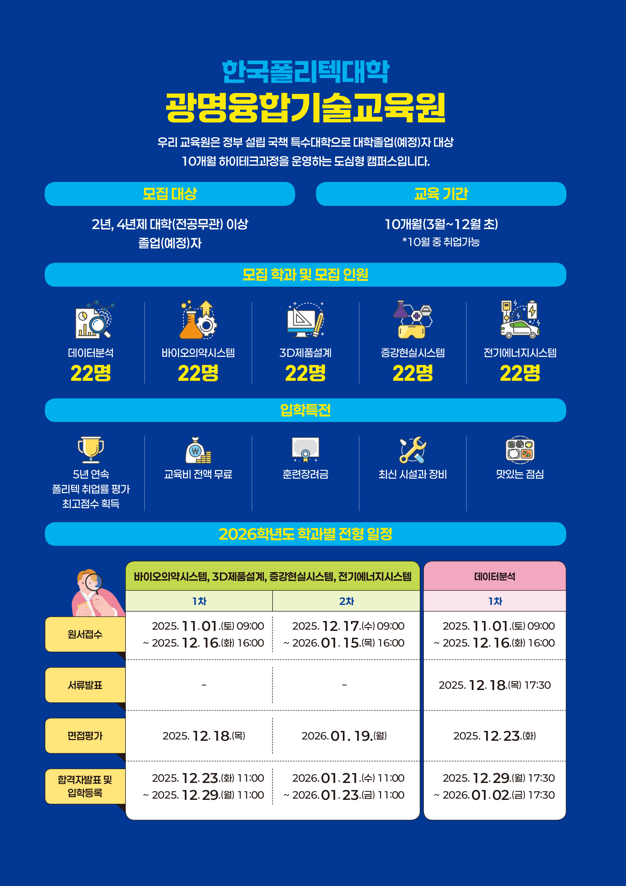 - 서울.경기 : 서울정수캠퍼스, 서울강서캠퍼스, 성남캠퍼스, 융합기술교육원, 인천캠퍼스, 남인천캠퍼스, 화성캠퍼스, 광명융합기술교육원, 반도체융합캠퍼스, 직업교육연구원
