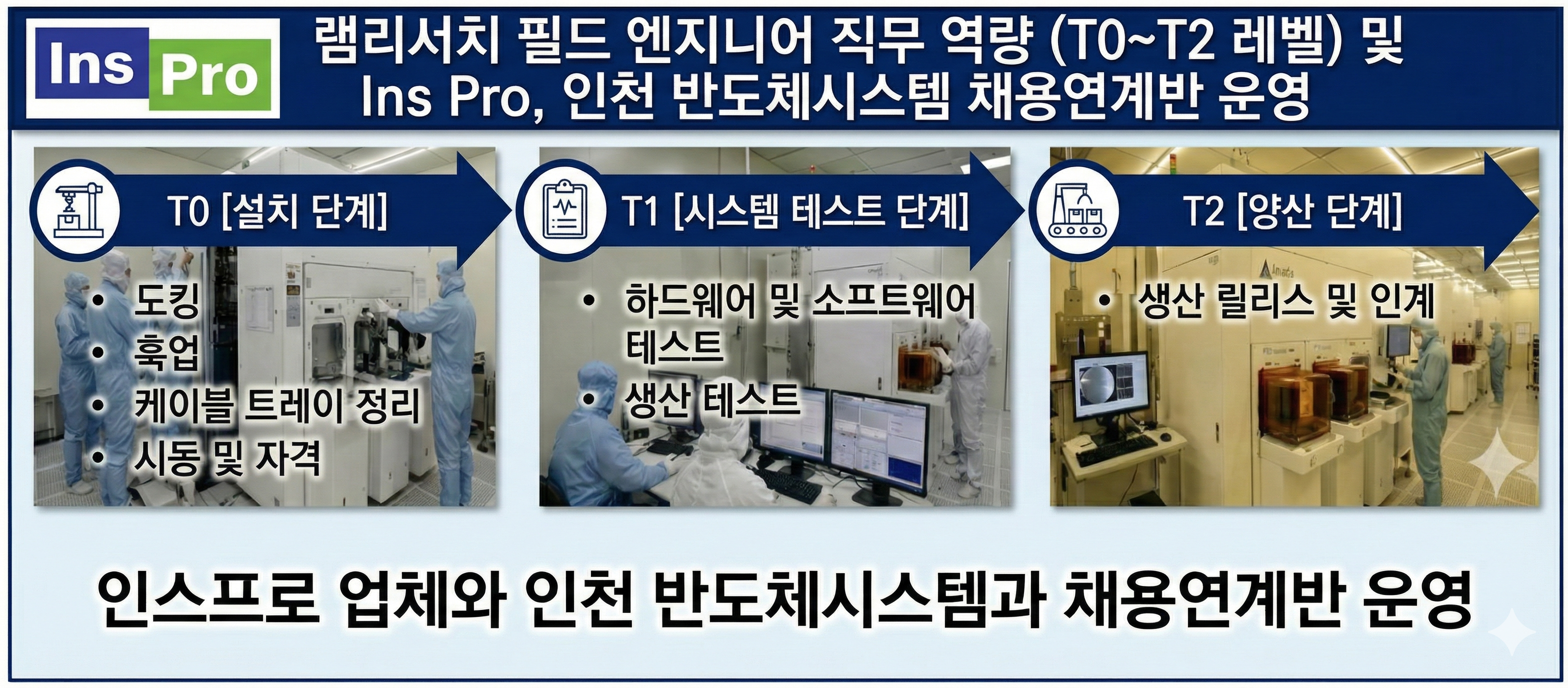 취업에 THE 강한 K-폴리텍 인천캠퍼스 반도체시스템과(Dept. of Semiconductor System) 국비무료,기숙사제공 10개월 하이테크과정 모집 •목표: 100%취업률, 100% 취업유지율 •제조기술, 검사기술(가이드, 검사,측정,인식), 통신기술, 이송기술 •2년제 이상 대졸 미취업자 과정(만 39세 이하 취업희망자) ★비전공자도 가능 •기구설계(장비/부품) + 전장제어(전기/공압) + S/W기술(PLC/C.C언어) + 품질관리(머신비전/기구해석) 문의? 032-510-2114 한국폴리텍대학 인천캠퍼스 TAKE(기술을 배우다!) TECH(기술이 정답이다!) 인천광역시 부평구 무네미로448번길 56 인천폴리텍