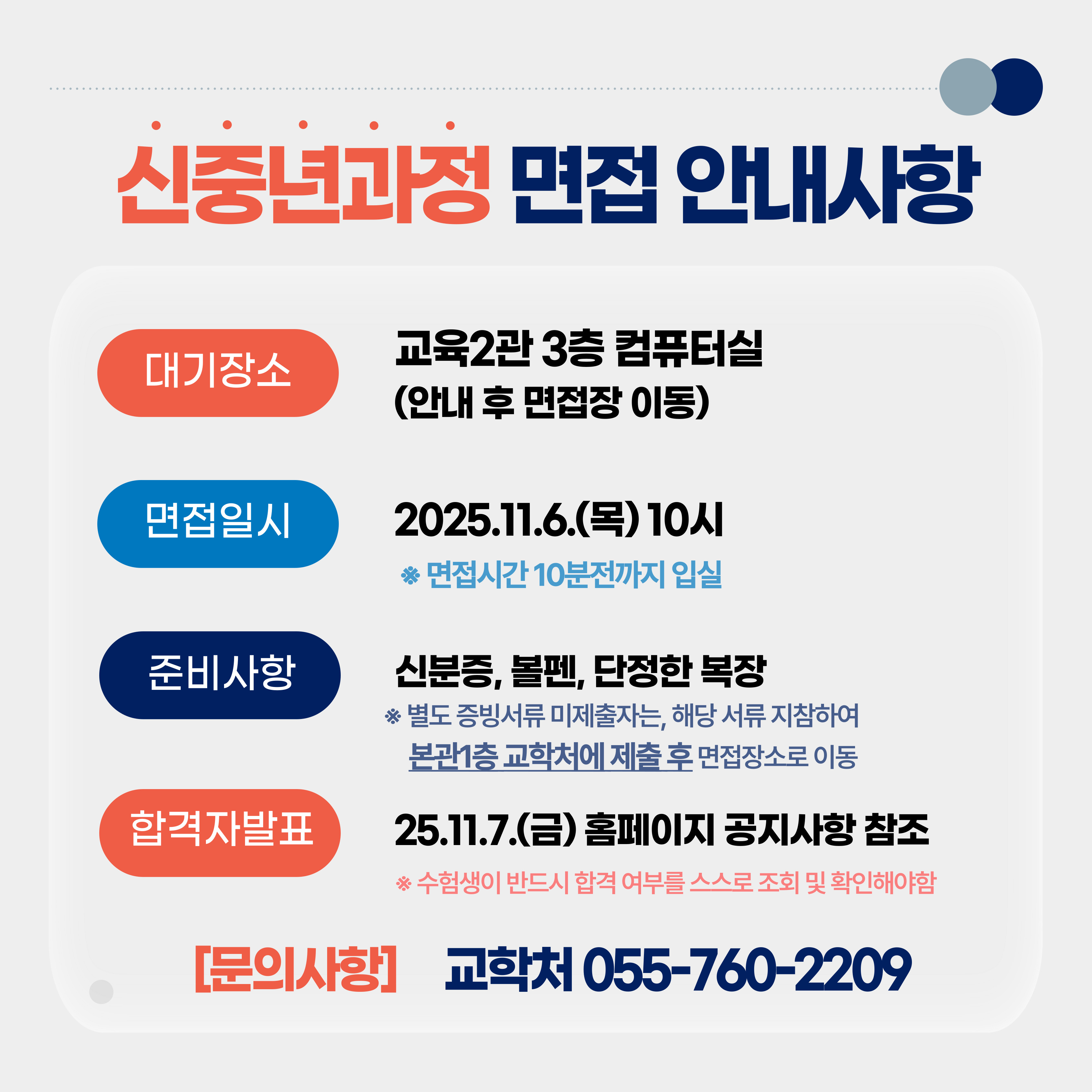 | 2025년 하반기 신중년특화(단기) [공조냉동기계기능사 필기] 과정 면접 안내 | |