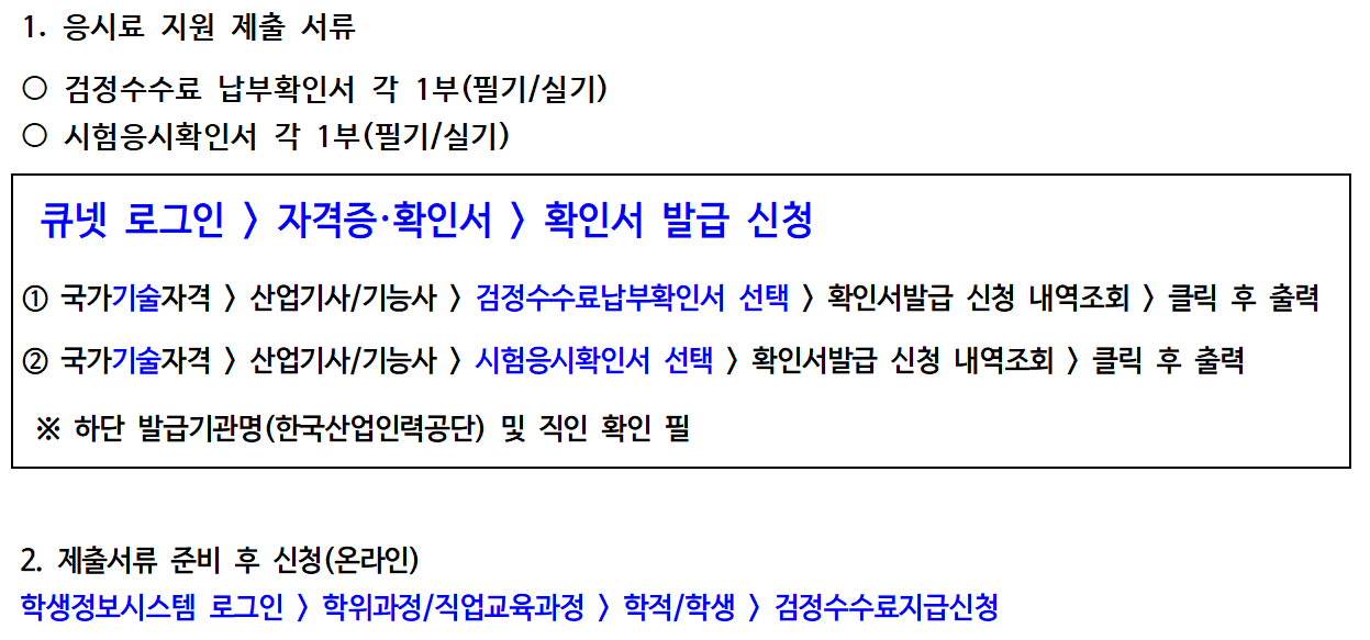 | 2025년 국가기술자격검정 수수료 지원 안내(2년제 학위과정) | |