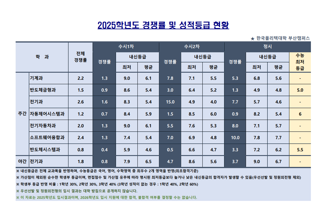 2025학년도 입시결과를 아래와 같이 공개합니다.