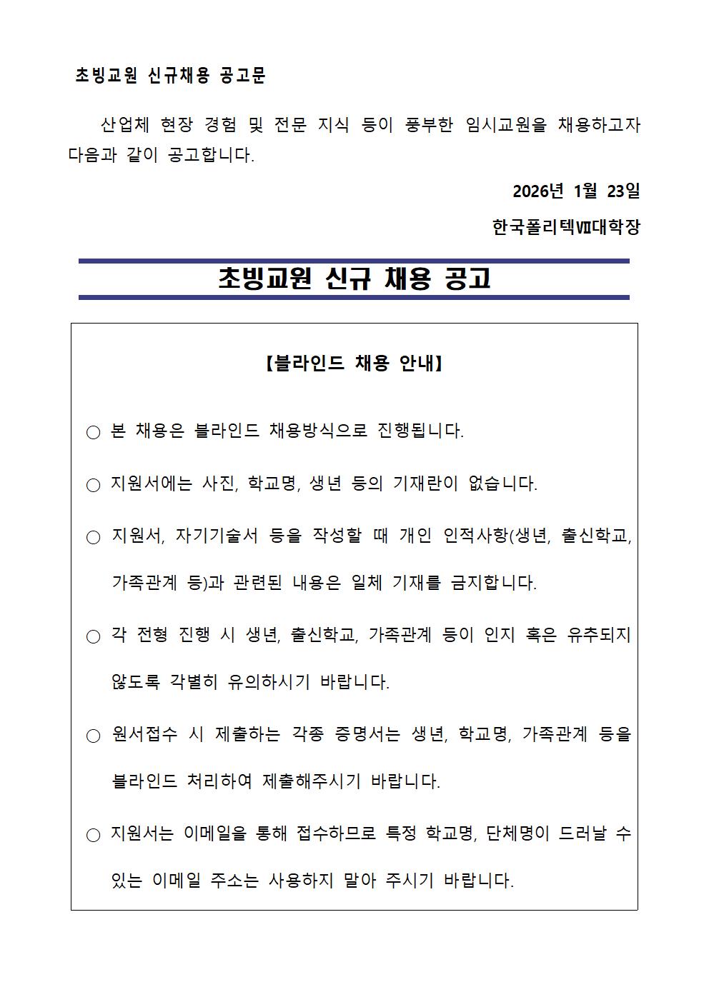 | 2026년도 한국폴리텍대학 창원캠퍼스 초빙교원 채용 공고 | |