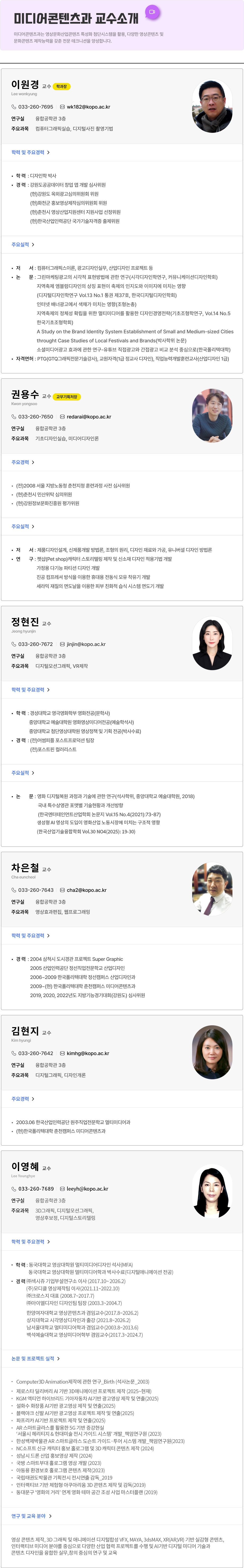 미디어콘텐츠과 교수소개
