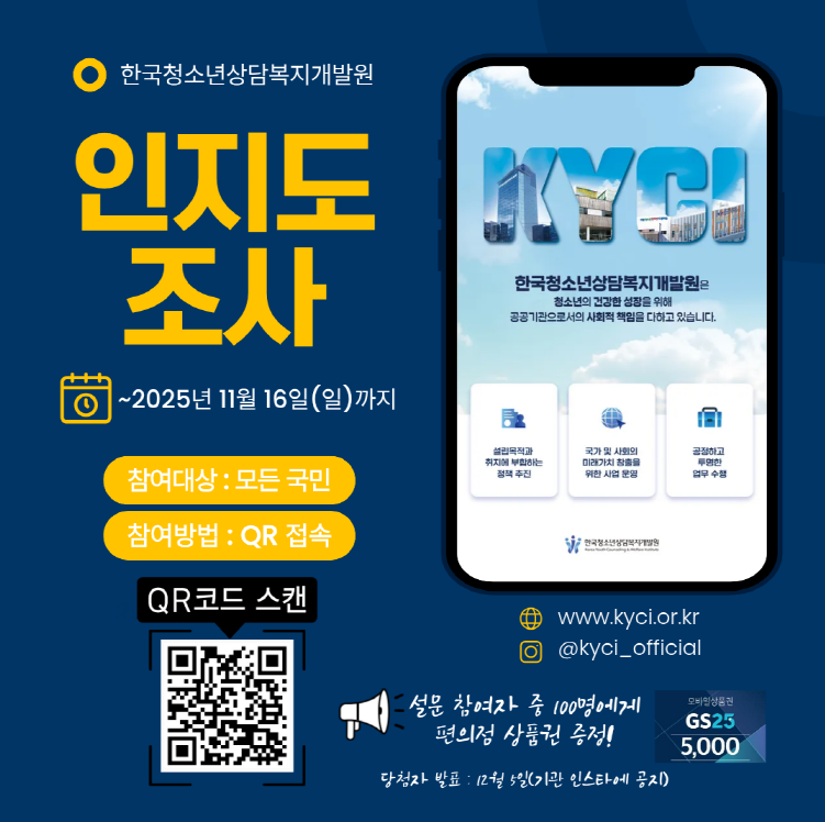 | 2025년 한국청소년상담복지개발원 인지도 및 서비스 수요조사 참여 요청 | |