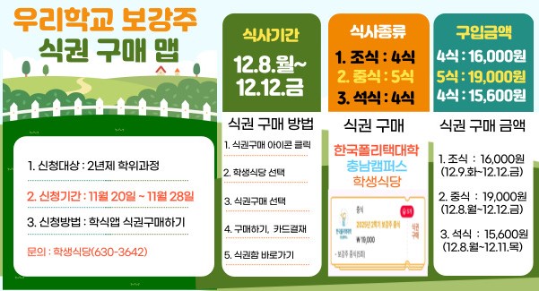 [학생식당] 2025년 2학기 보강주 식사신청 안내
