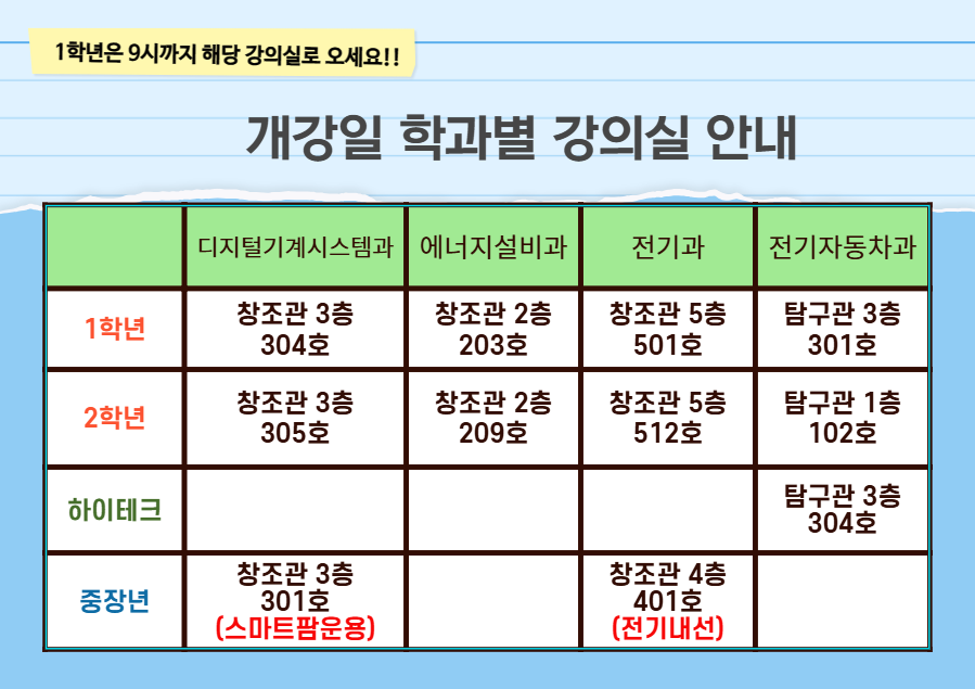 | [중요]3/3(화)개강일 강의실 안내-해당장소로 오세요 | |