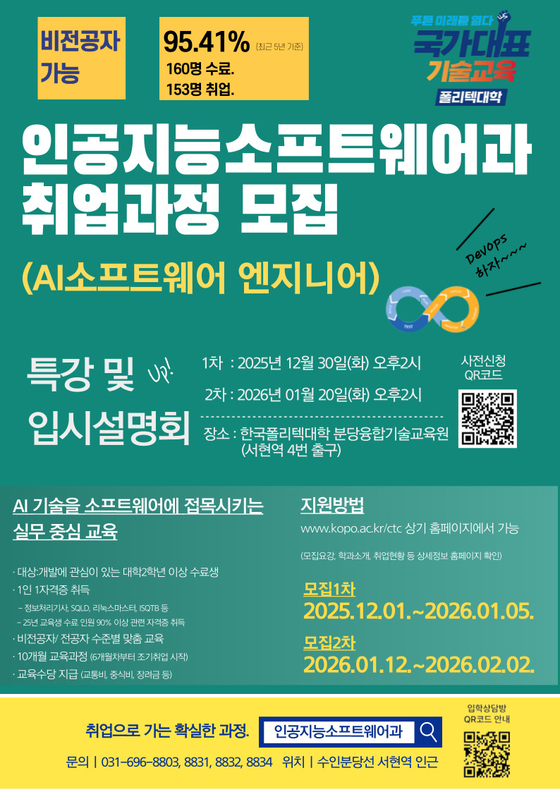 | [하이테크과정]인공지능소프트웨어과 특강 및 입시설명회 | |