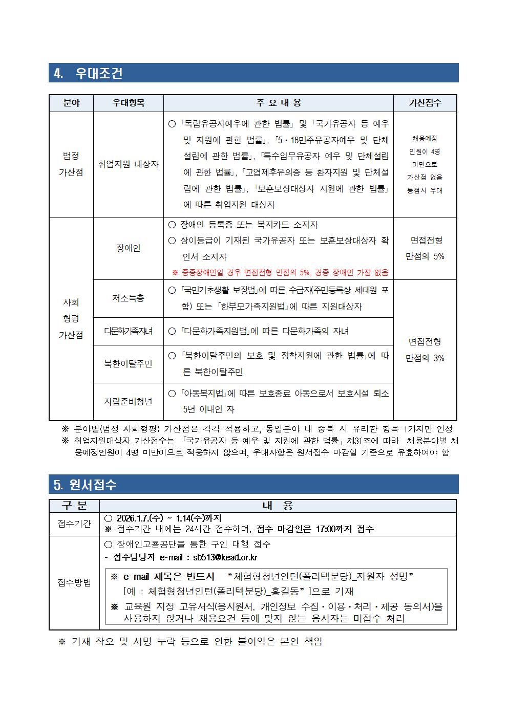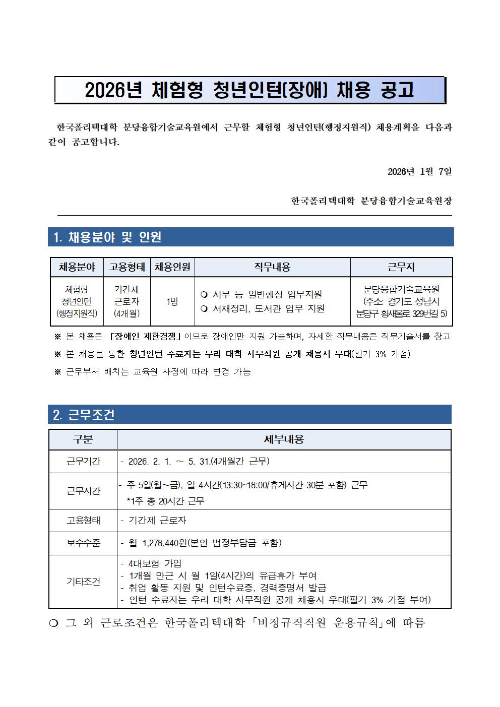 | 2026년 체험형 청년인턴(장애) 채용 공고 | |