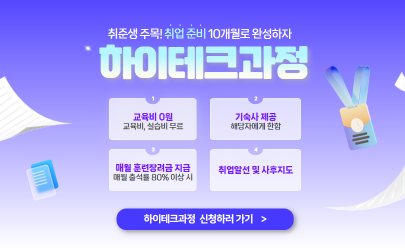 아래 배너를 클릭 시, 하이테크과정 원서 접수가 가능합니다 :)