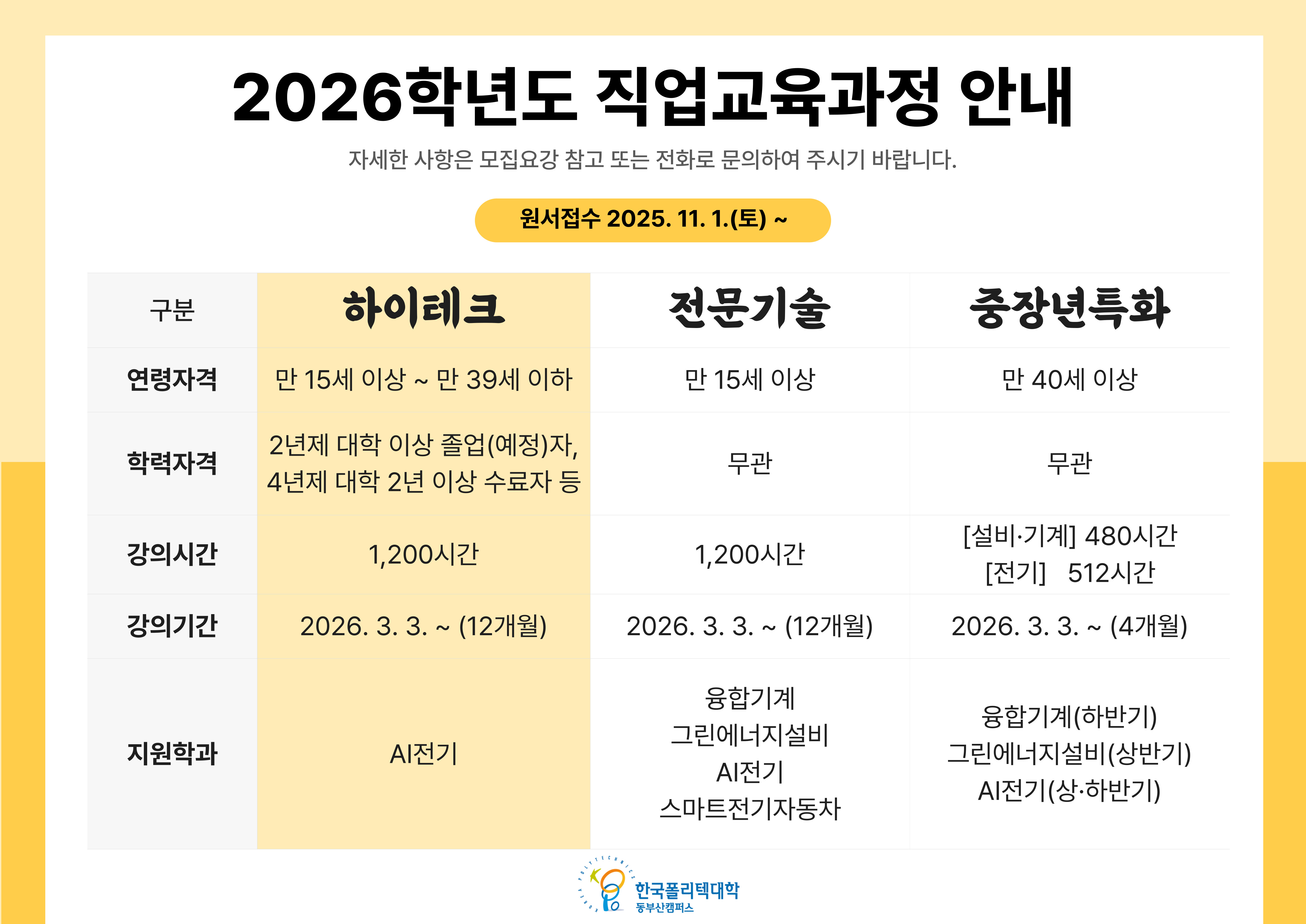 하이테크과정(1년)학과 바로가기