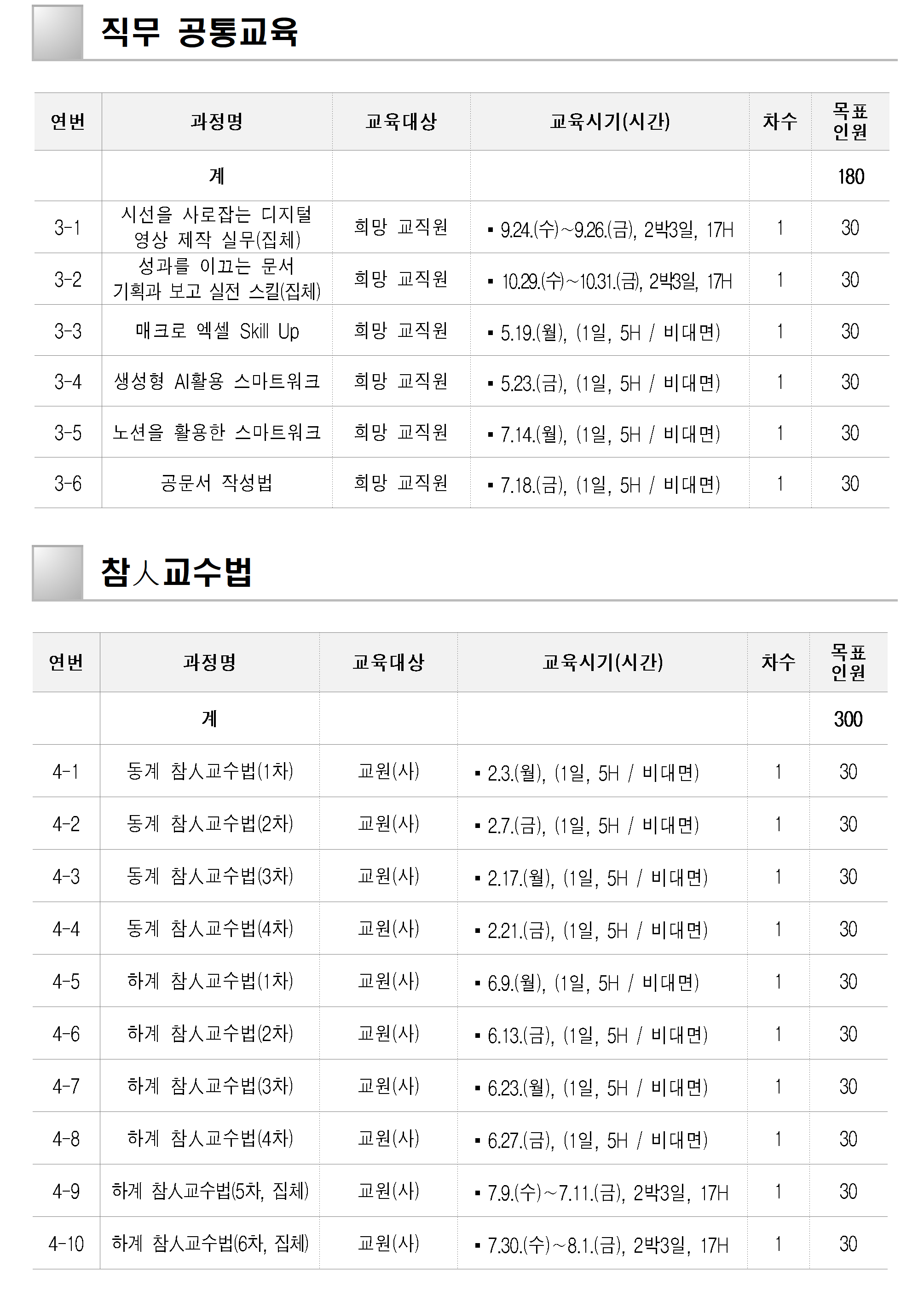• 개인별 직무 숙련도 및 교육 필요성을 고려한 선택형 교육 운영