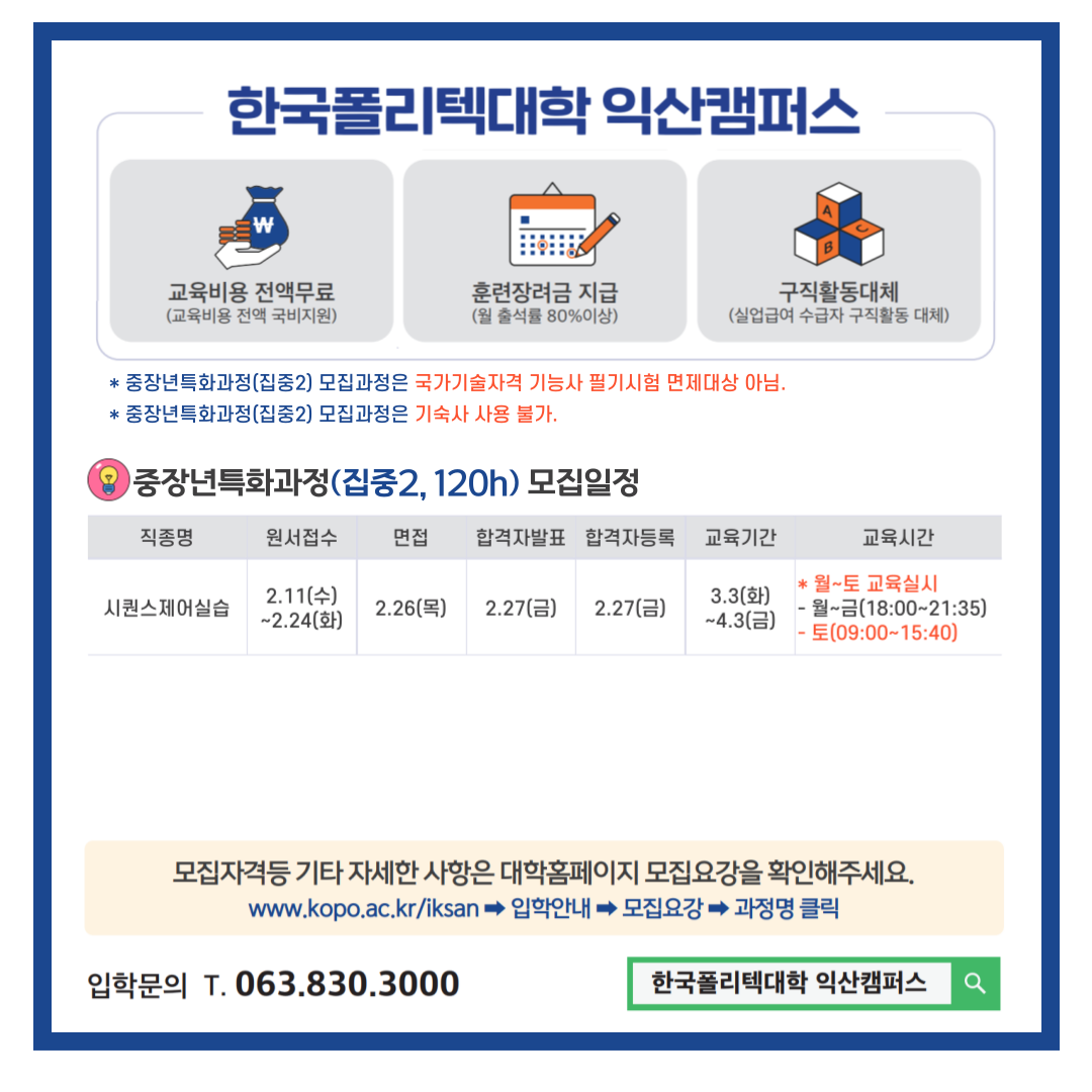 - 전라북도 : 전북캠퍼스, 익산캠퍼스, 인재원, 신기술교육원