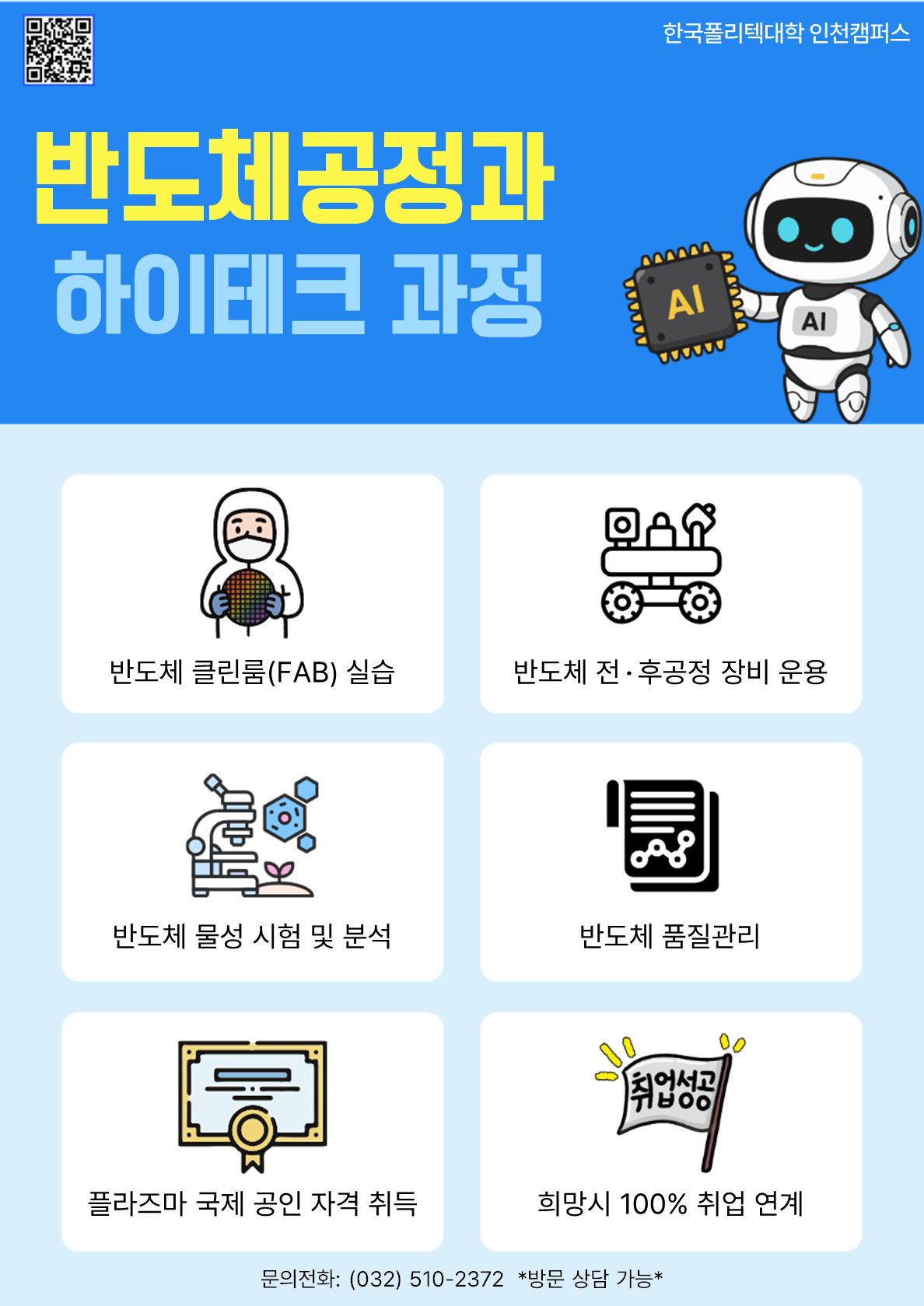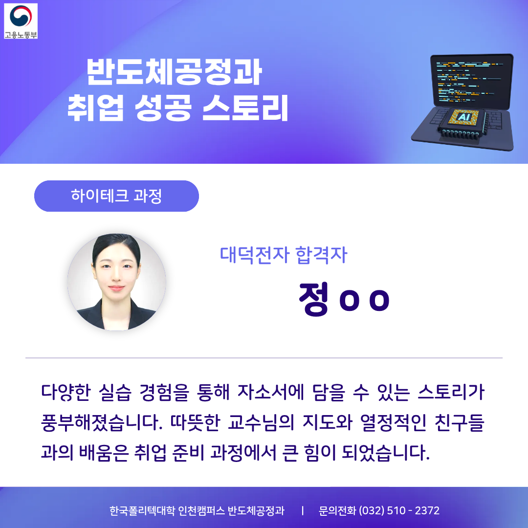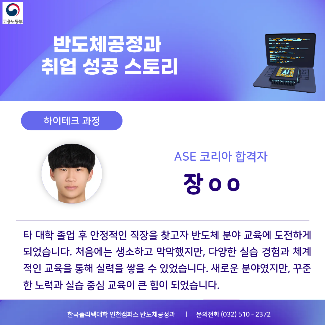 국가(고용노동부)가 지원하는 한국폴리텍 인천캠퍼스에서 실무 중심의 K-반도체인재를 양성합니다.