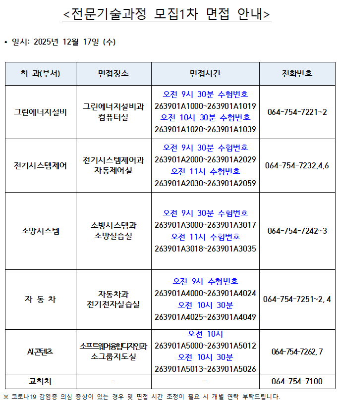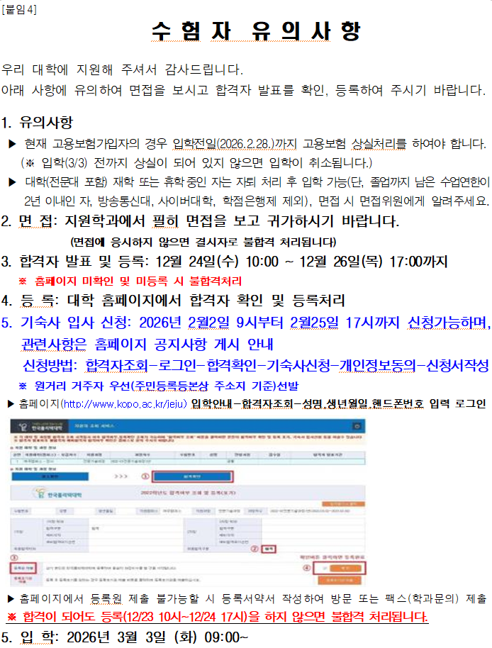 | 2026학년도 전문기술과정 모집1차 수험자 유의 사항 및 면접 안내 | |