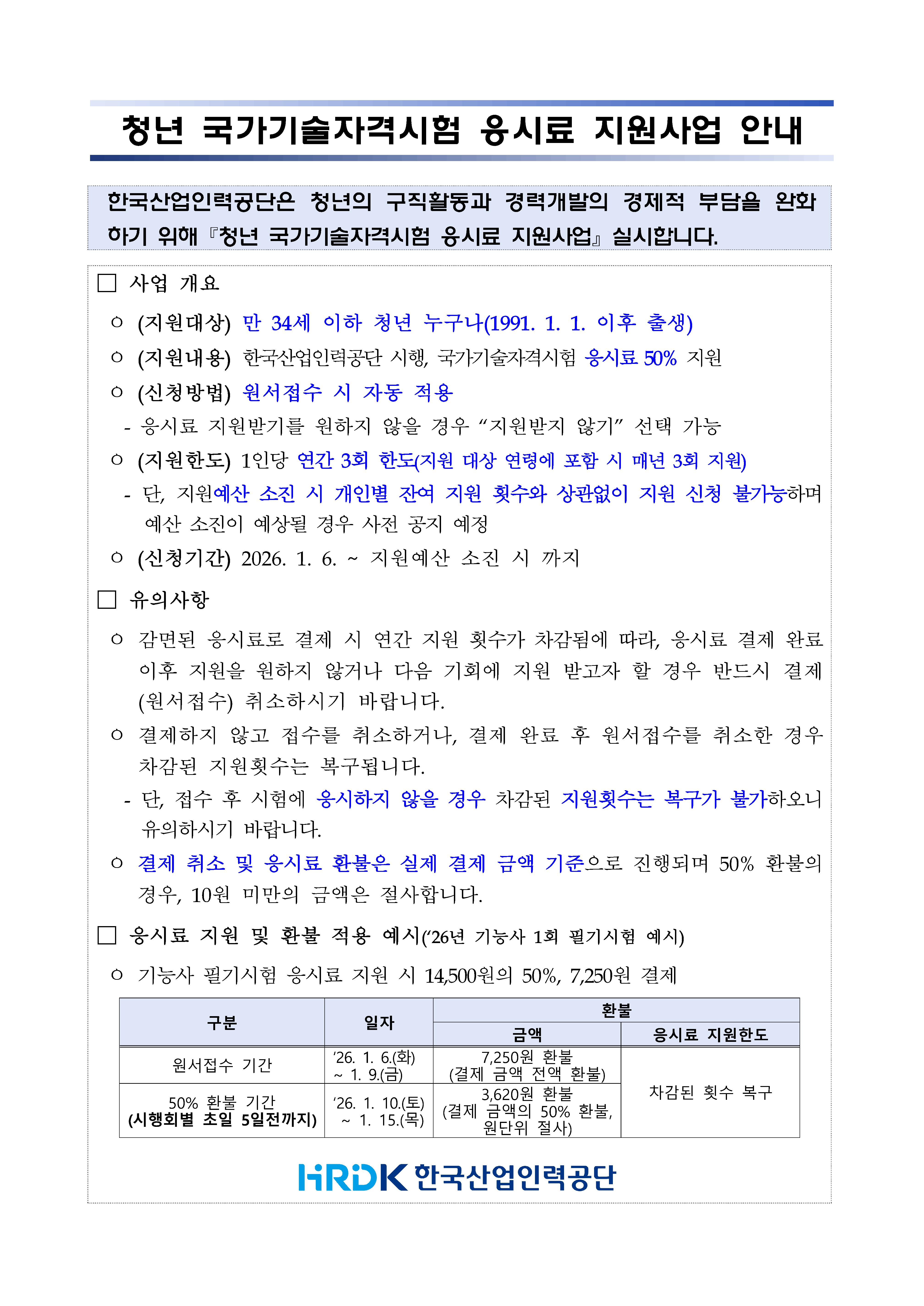 | 2026년 청년 국가기술자격 응시료 지원 안내 | |