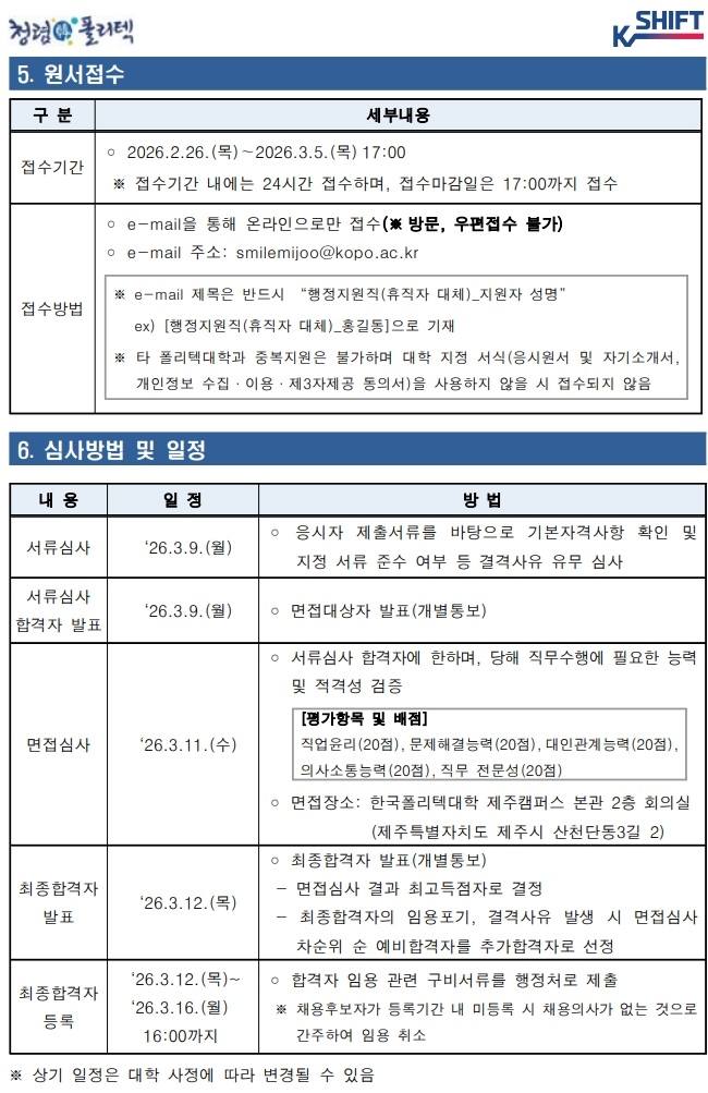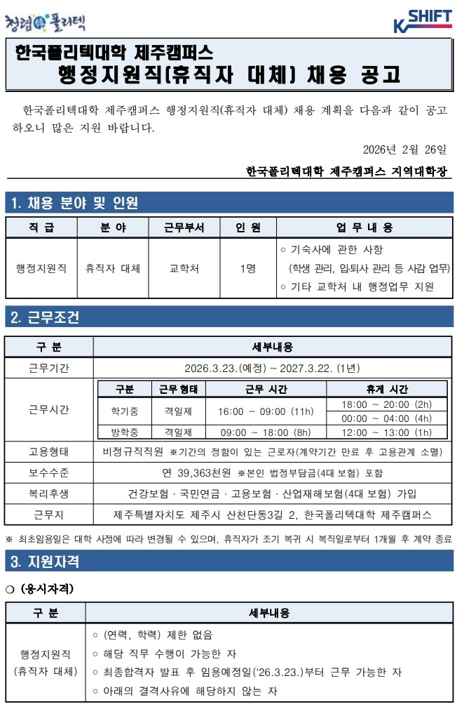 | 2026년 행정지원직(휴직자 대체) 채용 공고 | |