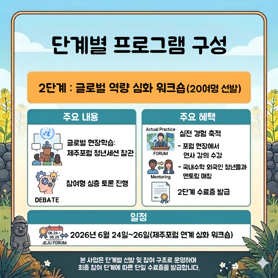 | 2026년 제주청년 글로벌스탠다드(J-Global)역량강화 지원사업 참가자 모집 | |
