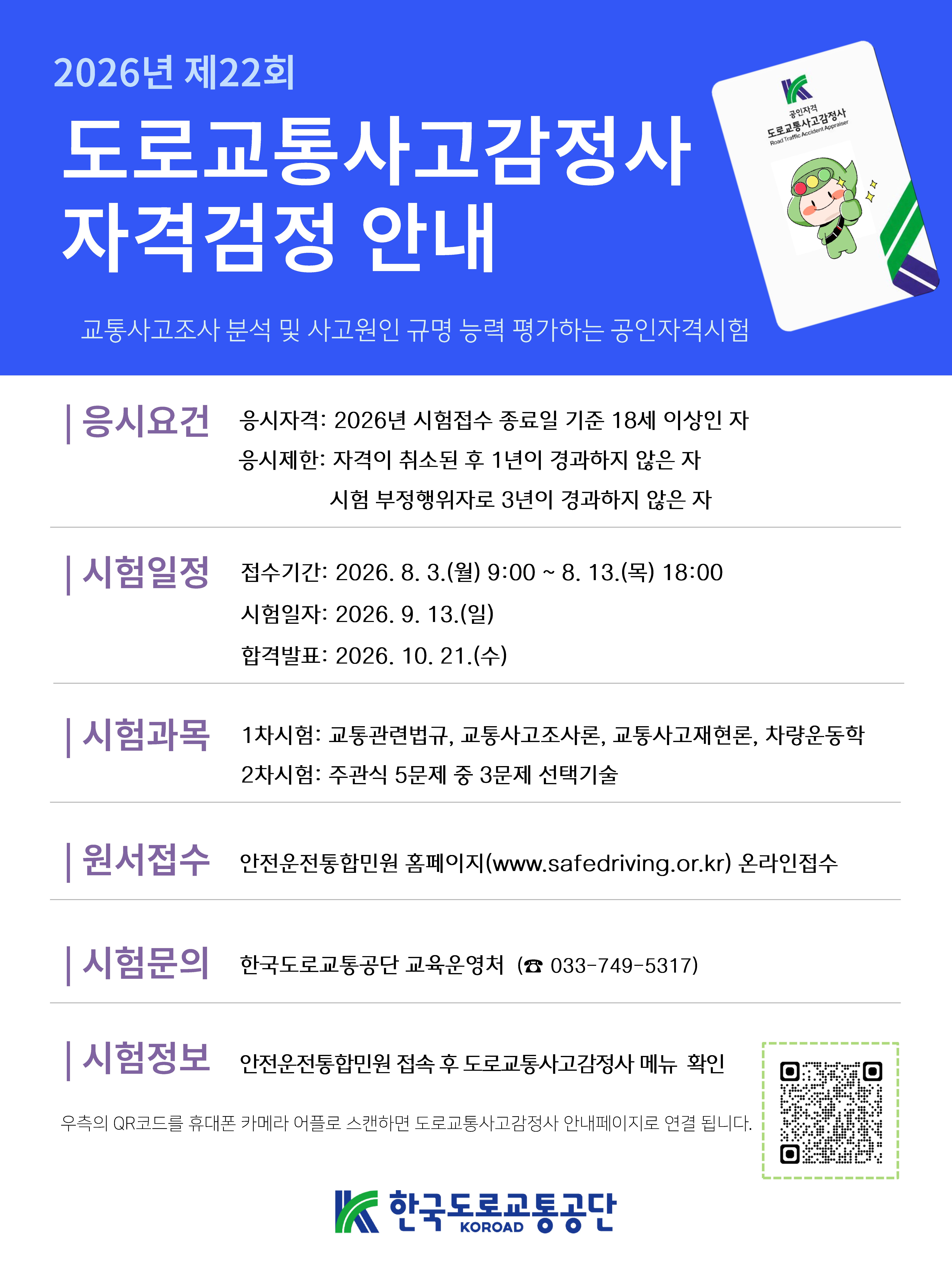 | 2026년 제22회 도로교통사고감정사 자격검정 안내 | |