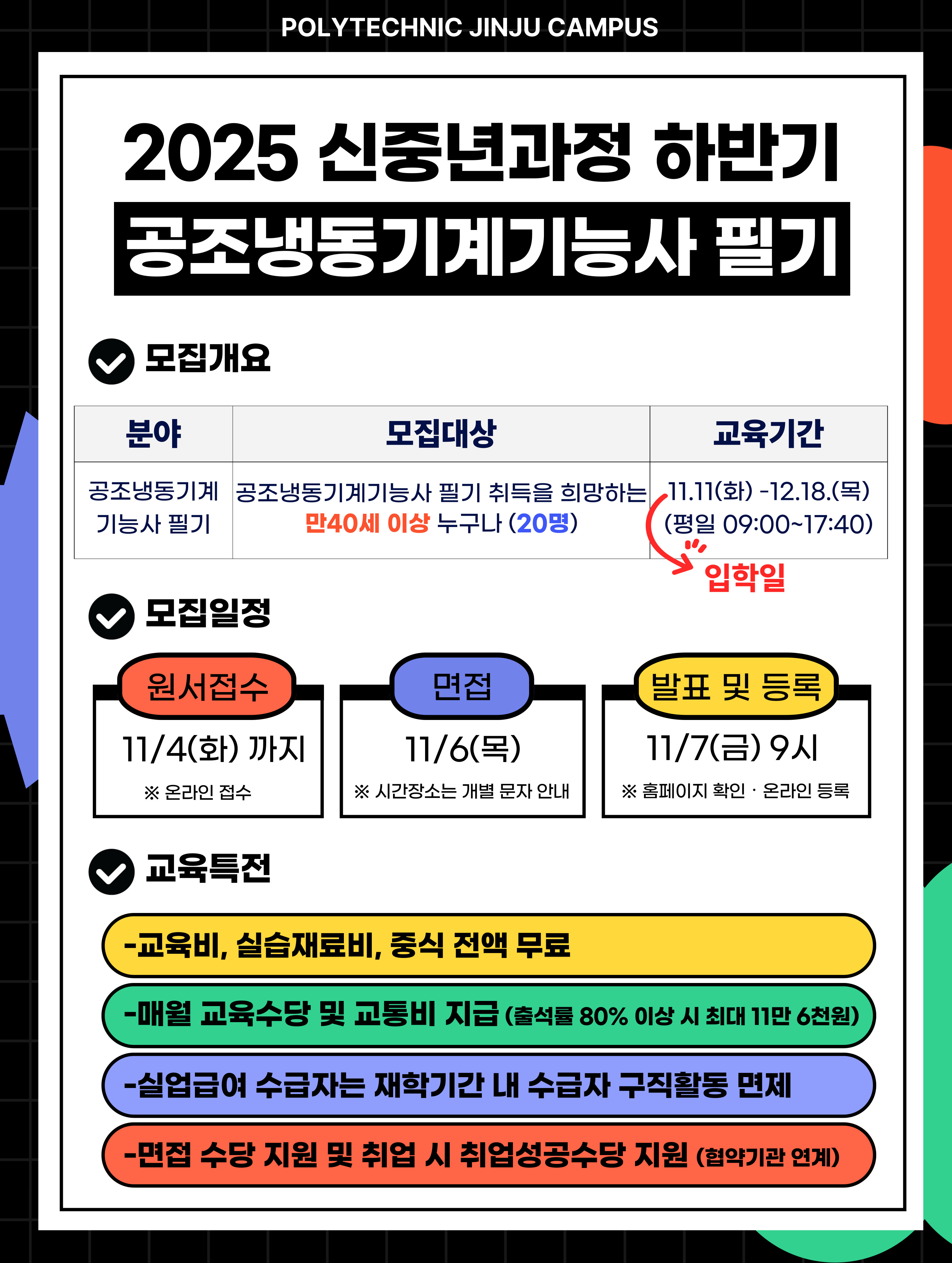 | 2025년 신중년특화 하반기 [공조냉동기계기능사 필기] 과정 교육생 모집 | |