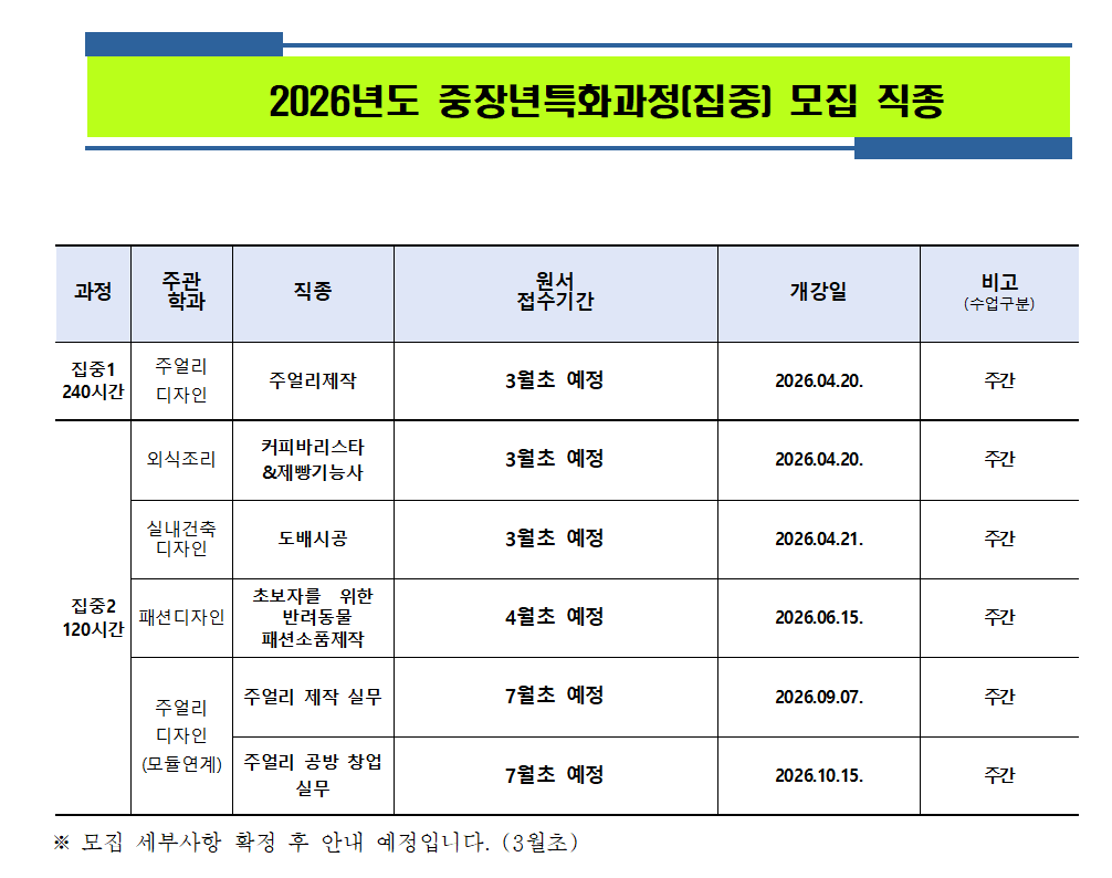 | 2026학년도 국비지원 직업교육과정 추가모집 및 중장년특화과정(집중) 모집 | |||||||||||||||||||||