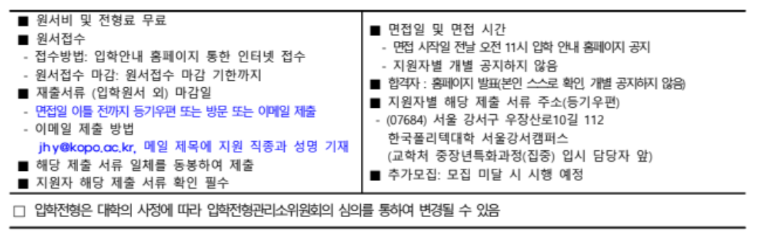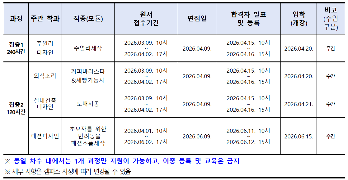 | 2026학년도 중장년특화과정(집중1,2) 신입생 모집 | |
