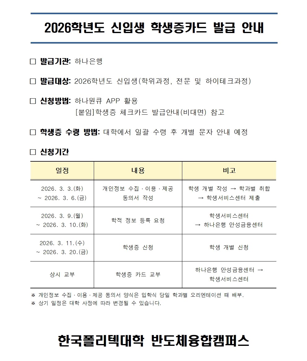| 2026학년도 신입생 학생증카드 발급 안내 | |