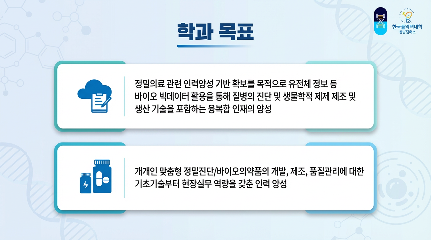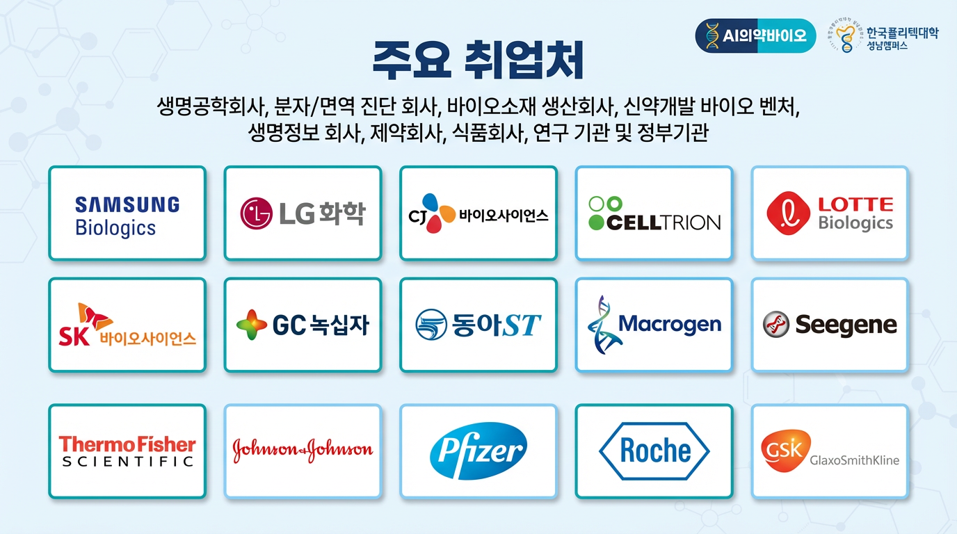 - 최신 연구 동향을 반영한 교육 과정을 통해 급변하는 바이오산업에 빠르게 적응할 수 있도록 합니다.