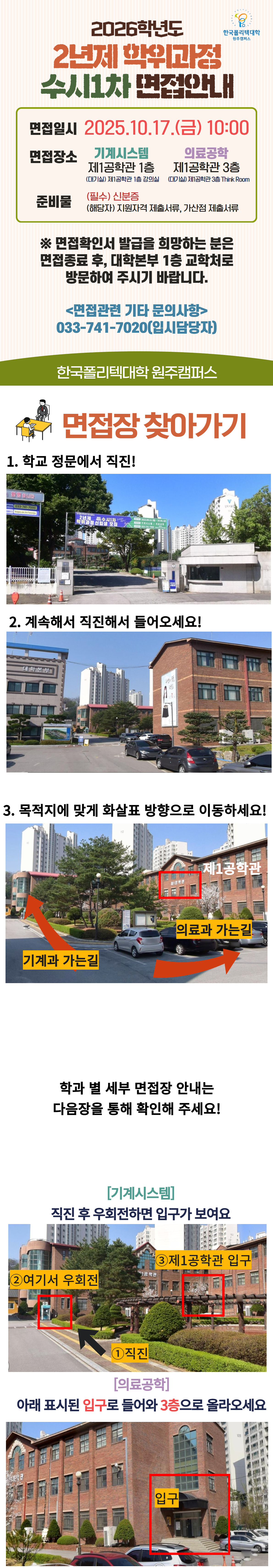 2026학년도 2년제학위과정 수시1차 면접 안내